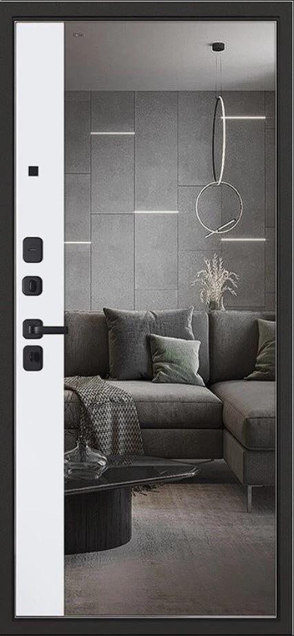 Надежная входная Дверь Scandi с зеркалом премиум класса по цене 45 587 руб. Большая толщина стали защитит от проникновения в ваш дом, квартиру или коттедж. Используется очень качественная фурнитура: замки, цилиндры, ручки, защелки. Покрытие и отделка двери изготовлено под внимательным контролем производителя. Дверь имеет долгий срок службы и гарантию.